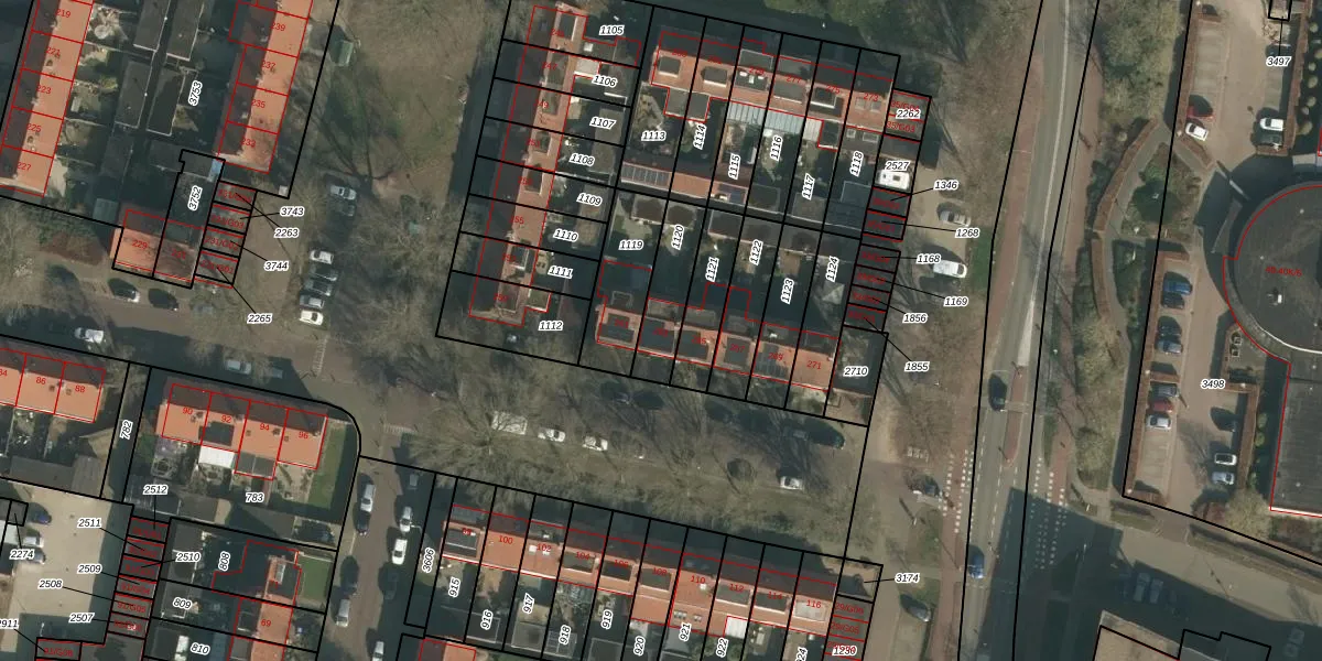 Gebruik de zoekbalk of klik op een perceel voor informatie over de adressen binnen dit perceel.