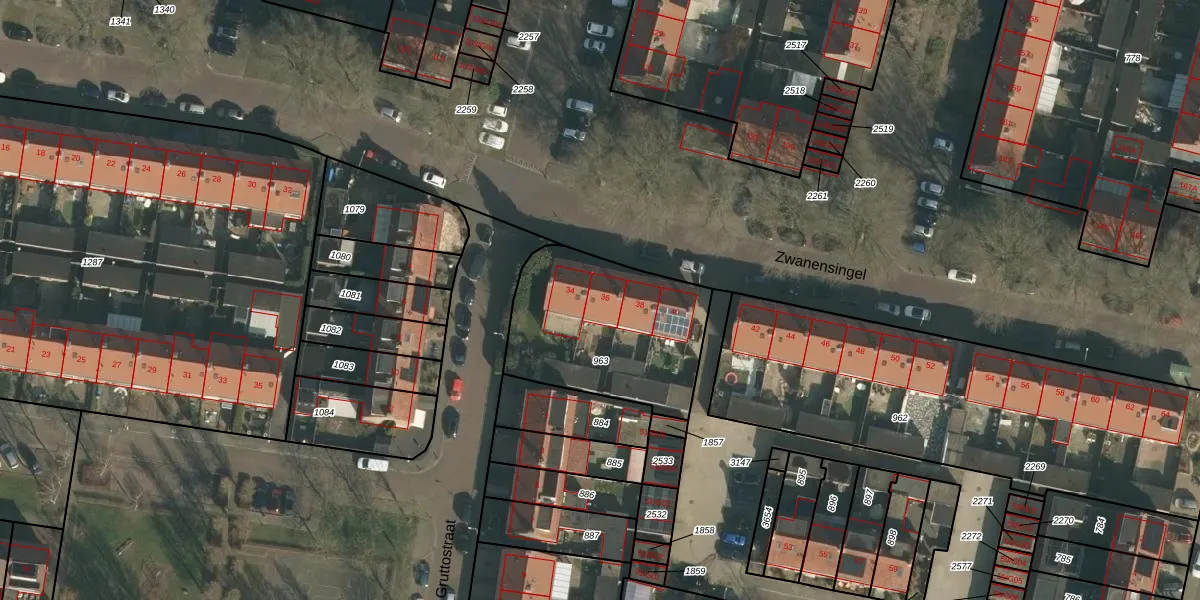 Het perceel waarop Zwanensingel 36 staat heeft een oppervlakte van 733 m². Dit is een groot perceel. De perceeloppervlakte wordt geregistreerd door het Kadaster. Gedetailleerde informatie over de maten van dit perceel kunt u vinden in het rapport Kadastrale kaart met maatvoering van Zwanensingel 36.
