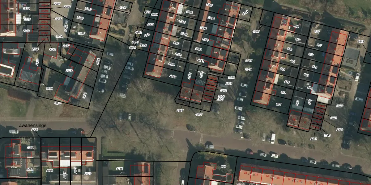 Zwanensingel 37 is gelegen op kadastraal perceel WCN00I1062. Deze kadastrale aanduiding is uniek en wordt gebruikt door het Kadaster om eigendomsrechten en andere zakelijke rechten vast te leggen. Het perceel maakt onderdeel uit van de kadastrale gemeente Wijchen.