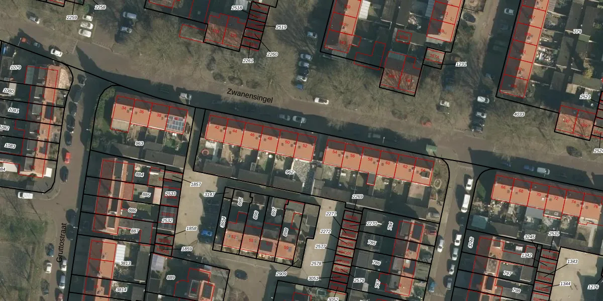 Het perceel waarop Zwanensingel 52 staat heeft een oppervlakte van 1795 m². Dit is een zeer groot perceel. De perceeloppervlakte wordt geregistreerd door het Kadaster. Gedetailleerde informatie over de maten van dit perceel kunt u vinden in het rapport Kadastrale kaart met maatvoering van Zwanensingel 52.