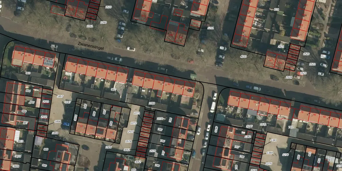 Het perceel waarop Zwanensingel 60 staat heeft een oppervlakte van 1795 m². Dit is een zeer groot perceel. De perceeloppervlakte wordt geregistreerd door het Kadaster. Gedetailleerde informatie over de maten van dit perceel kunt u vinden in het rapport Kadastrale kaart met maatvoering van Zwanensingel 60.