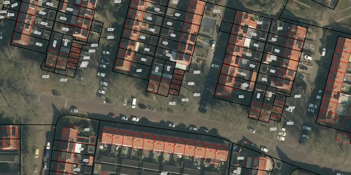 Gebruik de zoekbalk of klik op een perceel voor informatie over de adressen binnen dit perceel.