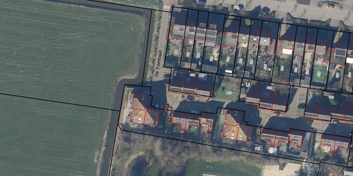 Het perceel waarop De Trambaan 22 staat heeft een oppervlakte van 340 m². Dit is een groot perceel. De perceeloppervlakte wordt geregistreerd door het Kadaster. Gedetailleerde informatie over de maten van dit perceel kunt u vinden in het rapport Kadastrale kaart met maatvoering van De Trambaan 22.