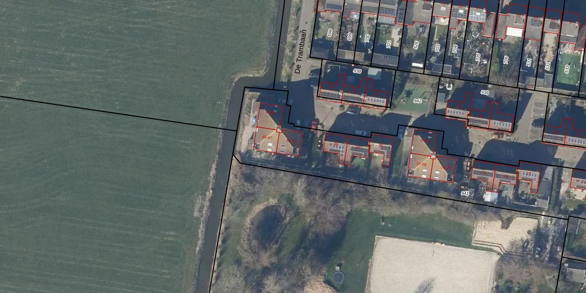 Het perceel waarop De Trambaan 43 staat heeft een oppervlakte van 2400 m². Dit is een zeer groot perceel. De perceeloppervlakte wordt geregistreerd door het Kadaster. Gedetailleerde informatie over de maten van dit perceel kunt u vinden in het rapport Kadastrale kaart met maatvoering van De Trambaan 43.