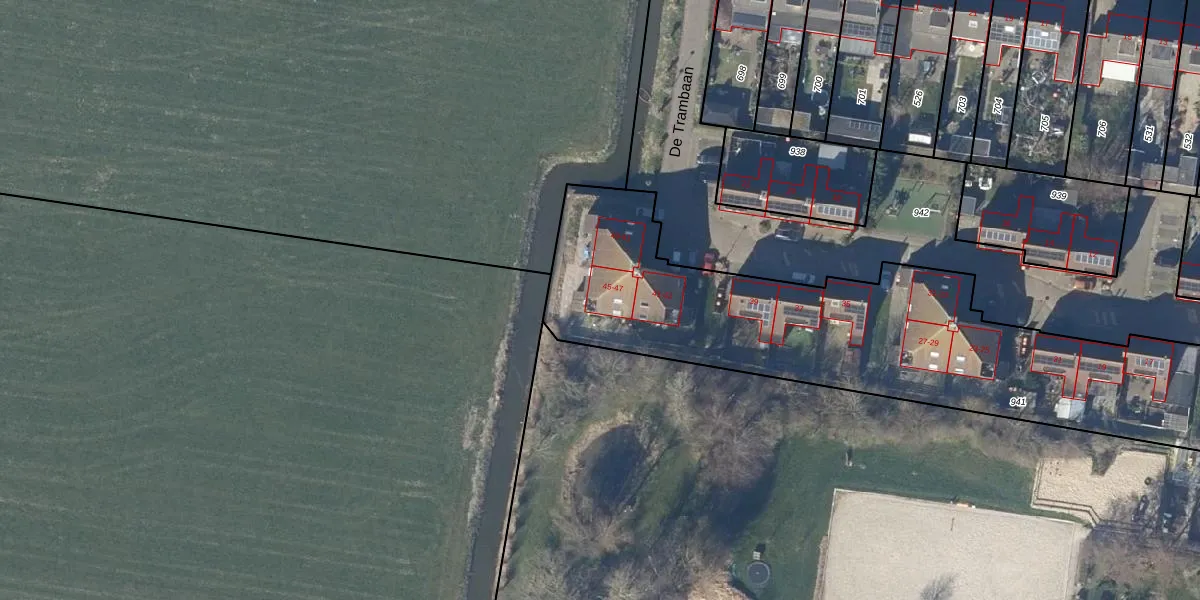 Het perceel waarop De Trambaan 47 staat heeft een oppervlakte van 2400 m². Dit is een zeer groot perceel. De perceeloppervlakte wordt geregistreerd door het Kadaster. Gedetailleerde informatie over de maten van dit perceel kunt u vinden in het rapport Kadastrale kaart met maatvoering van De Trambaan 47.
