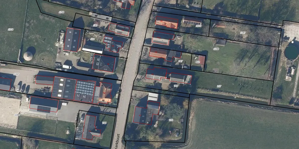 Het perceel waarop Kerkbuurt 45 staat heeft een oppervlakte van 1480 m². Dit is een zeer groot perceel. De perceeloppervlakte wordt geregistreerd door het Kadaster. Gedetailleerde informatie over de maten van dit perceel kunt u vinden in het rapport Kadastrale kaart met maatvoering van Kerkbuurt 45.