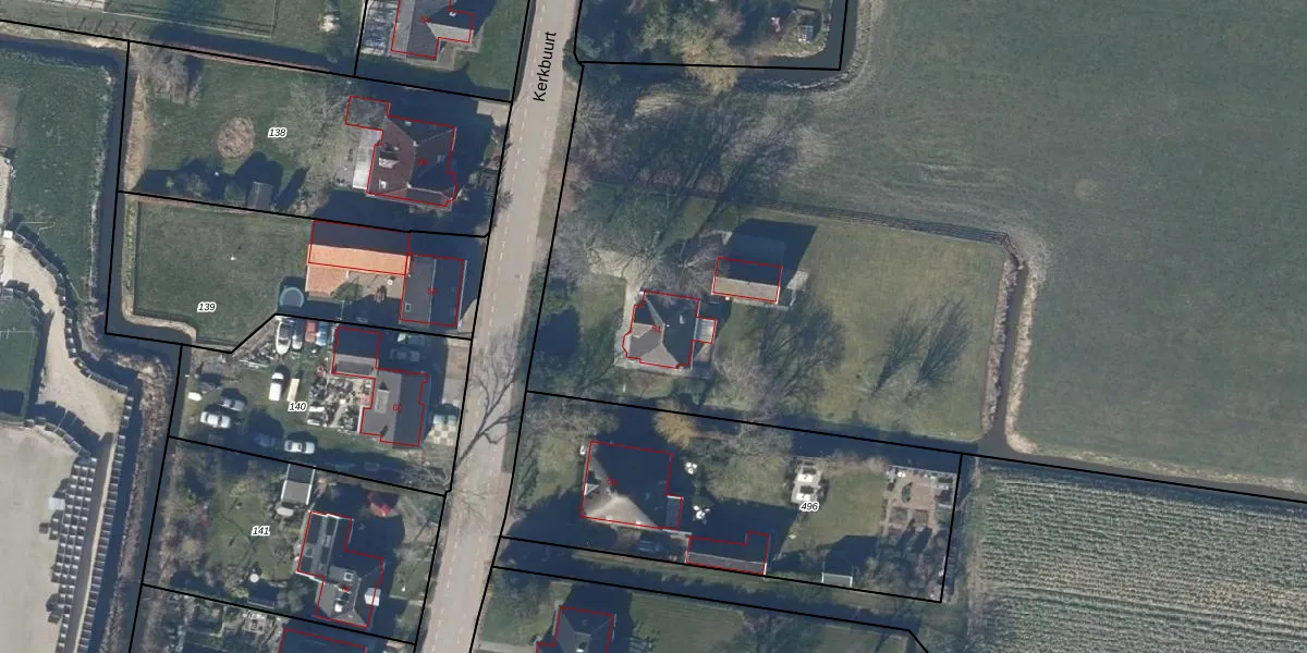Het perceel waarop Kerkbuurt 51 staat heeft een oppervlakte van 4,5 ha. Dit is een zeer groot perceel. De perceeloppervlakte wordt geregistreerd door het Kadaster. Gedetailleerde informatie over de maten van dit perceel kunt u vinden in het rapport Kadastrale kaart met maatvoering van Kerkbuurt 51.