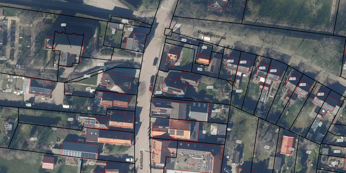 Het perceel waarop Kerkbuurt 65 staat heeft een oppervlakte van 666 m². Dit is een groot perceel. De perceeloppervlakte wordt geregistreerd door het Kadaster. Gedetailleerde informatie over de maten van dit perceel kunt u vinden in het rapport Kadastrale kaart met maatvoering van Kerkbuurt 65.