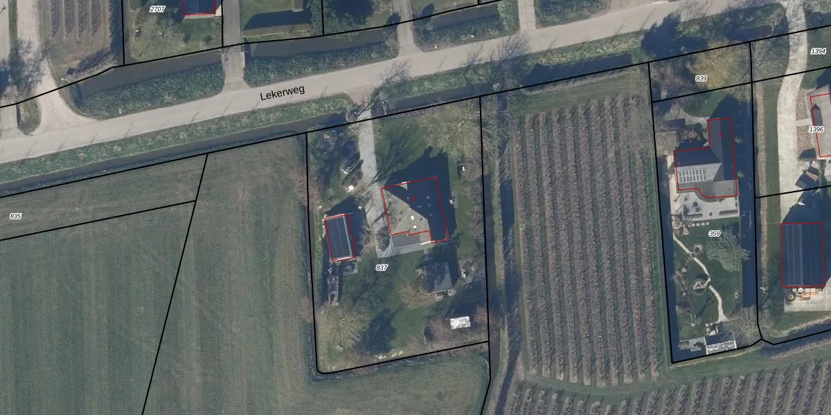 Het perceel waarop Lekerweg 23 staat heeft een oppervlakte van 2440 m². Dit is een zeer groot perceel. De perceeloppervlakte wordt geregistreerd door het Kadaster. Gedetailleerde informatie over de maten van dit perceel kunt u vinden in het rapport Kadastrale kaart met maatvoering van Lekerweg 23.