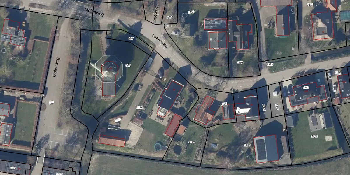 Het perceel waarop Lekerweg 39 staat heeft een oppervlakte van 2120 m². Dit is een zeer groot perceel. De perceeloppervlakte wordt geregistreerd door het Kadaster. Gedetailleerde informatie over de maten van dit perceel kunt u vinden in het rapport Kadastrale kaart met maatvoering van Lekerweg 39.