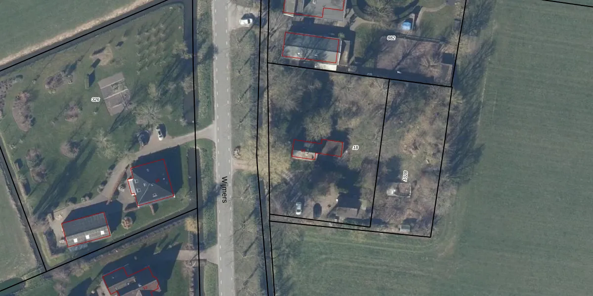 Het perceel waarop Wijmers 15 staat heeft een oppervlakte van 1910 m². Dit is een zeer groot perceel. De perceeloppervlakte wordt geregistreerd door het Kadaster. Gedetailleerde informatie over de maten van dit perceel kunt u vinden in het rapport Kadastrale kaart met maatvoering van Wijmers 15.
