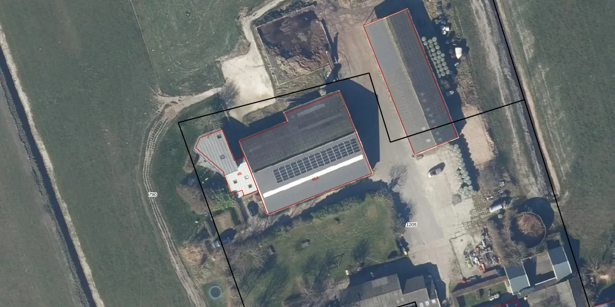 Het perceel waarop Zuiderdijk 46-A staat heeft een oppervlakte van 9605 m². Dit is een zeer groot perceel. De perceeloppervlakte wordt geregistreerd door het Kadaster. Gedetailleerde informatie over de maten van dit perceel kunt u vinden in het rapport Kadastrale kaart met maatvoering van Zuiderdijk 46-A.