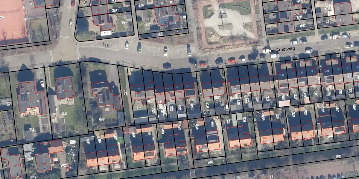Gebruik de zoekbalk of klik op een perceel voor informatie over de adressen binnen dit perceel.