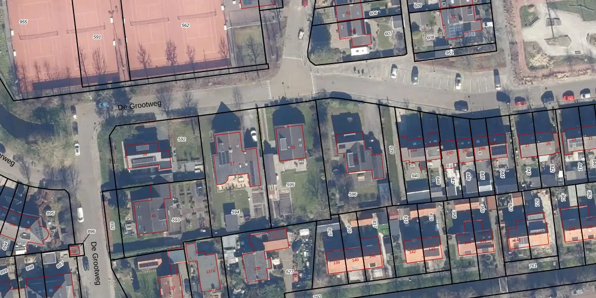 Het perceel waarop De Grootweg 35 staat heeft een oppervlakte van 810 m². Dit is een groot perceel. De perceeloppervlakte wordt geregistreerd door het Kadaster. Gedetailleerde informatie over de maten van dit perceel kunt u vinden in het rapport Kadastrale kaart met maatvoering van De Grootweg 35.