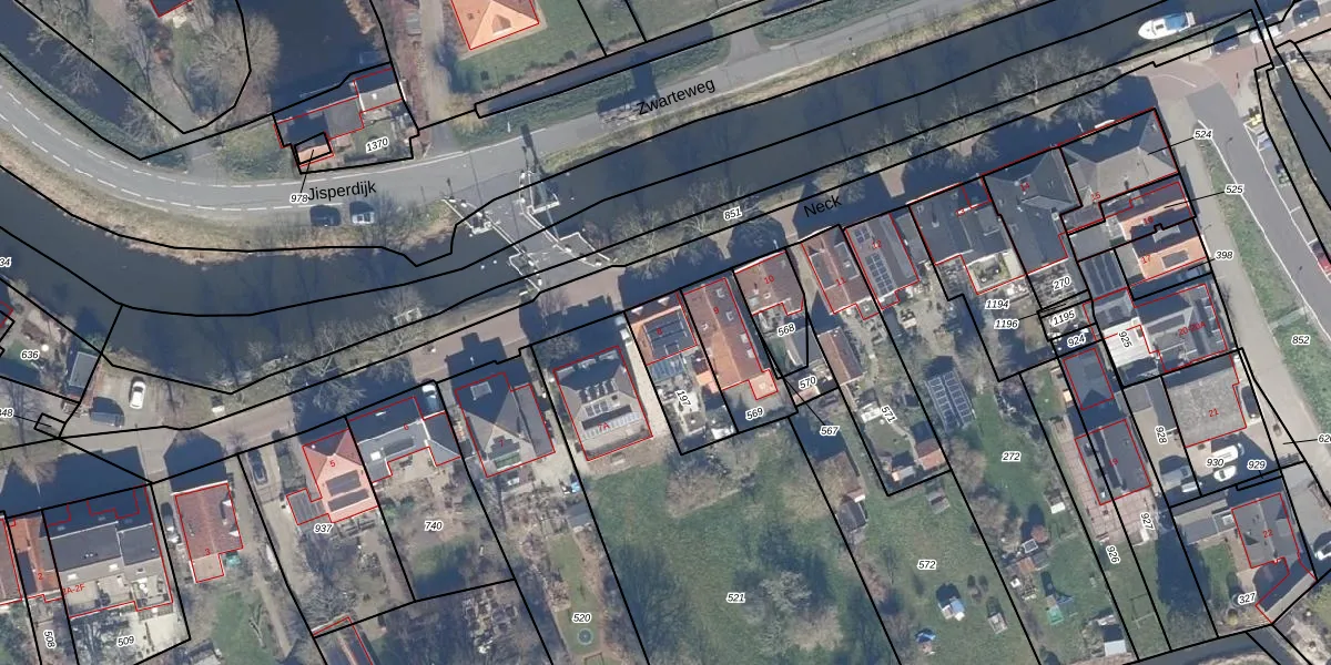 Het perceel waarop Neck 8 staat heeft een oppervlakte van 213 m². Dit is een middelgroot perceel. De perceeloppervlakte wordt geregistreerd door het Kadaster. Gedetailleerde informatie over de maten van dit perceel kunt u vinden in het rapport Kadastrale kaart met maatvoering van Neck 8.