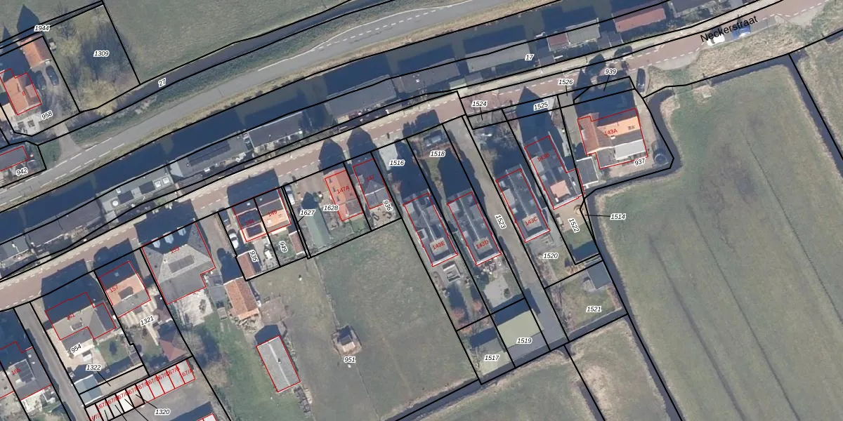 Neckerstraat 143-E is gelegen op kadastraal perceel JIS00H1516. Deze kadastrale aanduiding is uniek en wordt gebruikt door het Kadaster om eigendomsrechten en andere zakelijke rechten vast te leggen. Het perceel maakt onderdeel uit van de kadastrale gemeente Jisp.