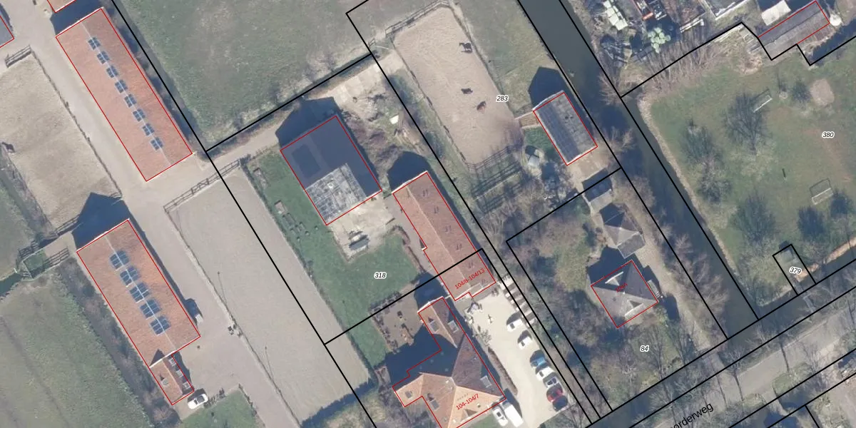 Het perceel waarop Noorderweg 104-12 staat heeft een oppervlakte van 2510 m². Dit is een zeer groot perceel. De perceeloppervlakte wordt geregistreerd door het Kadaster. Gedetailleerde informatie over de maten van dit perceel kunt u vinden in het rapport Kadastrale kaart met maatvoering van Noorderweg 104-12.