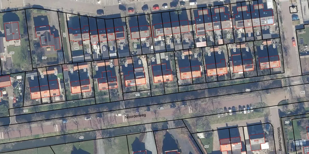 Gebruik de zoekbalk of klik op een perceel voor informatie over de adressen binnen dit perceel.
