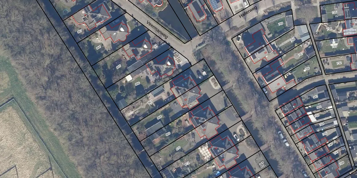 Het perceel waarop Veermanweg 1 staat heeft een oppervlakte van 590 m². Dit is een groot perceel. De perceeloppervlakte wordt geregistreerd door het Kadaster. Gedetailleerde informatie over de maten van dit perceel kunt u vinden in het rapport Kadastrale kaart met maatvoering van Veermanweg 1.