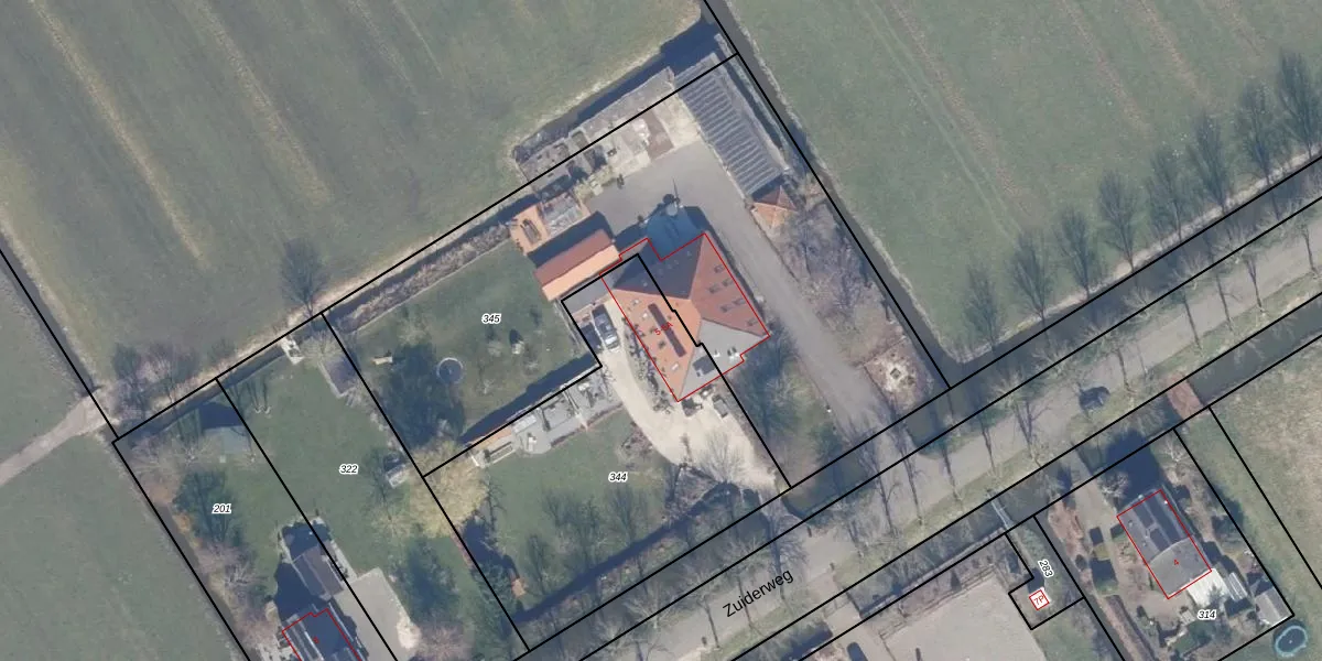 Het perceel waarop Zuiderweg 5-A staat heeft een oppervlakte van 1644 m². Dit is een zeer groot perceel. De perceeloppervlakte wordt geregistreerd door het Kadaster. Gedetailleerde informatie over de maten van dit perceel kunt u vinden in het rapport Kadastrale kaart met maatvoering van Zuiderweg 5-A.