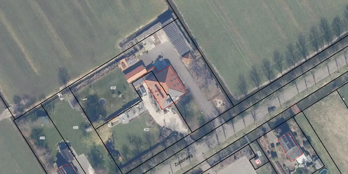 Het perceel waarop Zuiderweg 5 staat heeft een oppervlakte van 2906 m². Dit is een zeer groot perceel. De perceeloppervlakte wordt geregistreerd door het Kadaster. Gedetailleerde informatie over de maten van dit perceel kunt u vinden in het rapport Kadastrale kaart met maatvoering van Zuiderweg 5.