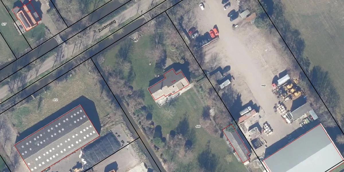 Het perceel waarop Zuiderweg 57-A staat heeft een oppervlakte van 6570 m². Dit is een zeer groot perceel. De perceeloppervlakte wordt geregistreerd door het Kadaster. Gedetailleerde informatie over de maten van dit perceel kunt u vinden in het rapport Kadastrale kaart met maatvoering van Zuiderweg 57-A.