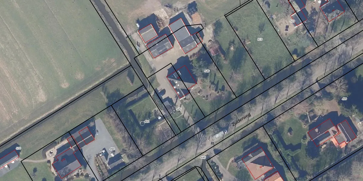Het perceel waarop Zuiderweg 65-A staat heeft een oppervlakte van 545 m². Dit is een groot perceel. De perceeloppervlakte wordt geregistreerd door het Kadaster. Gedetailleerde informatie over de maten van dit perceel kunt u vinden in het rapport Kadastrale kaart met maatvoering van Zuiderweg 65-A.