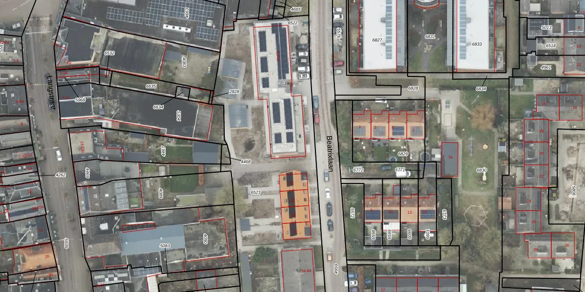 Het perceel waarop Beatrixlaan 12 staat heeft een oppervlakte van 3453 m². Dit is een zeer groot perceel. De perceeloppervlakte wordt geregistreerd door het Kadaster. Gedetailleerde informatie over de maten van dit perceel kunt u vinden in het rapport Kadastrale kaart met maatvoering van Beatrixlaan 12.