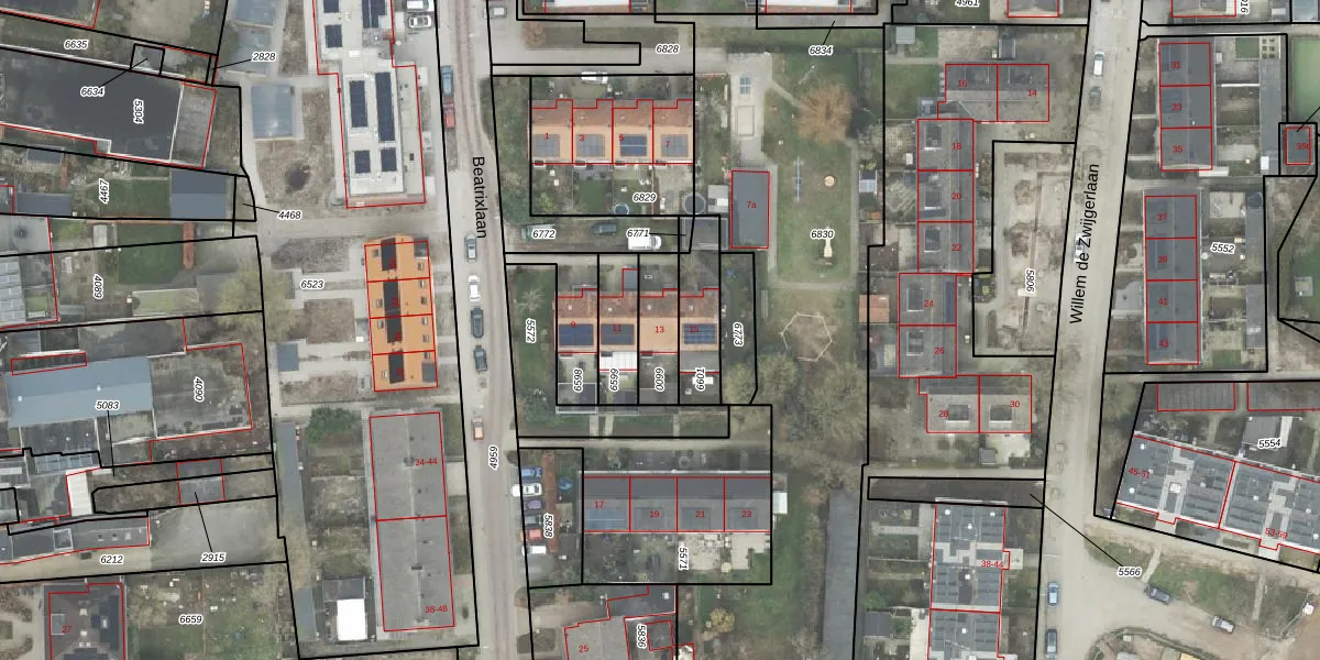 Gebruik de zoekbalk of klik op een perceel voor informatie over de adressen binnen dit perceel.