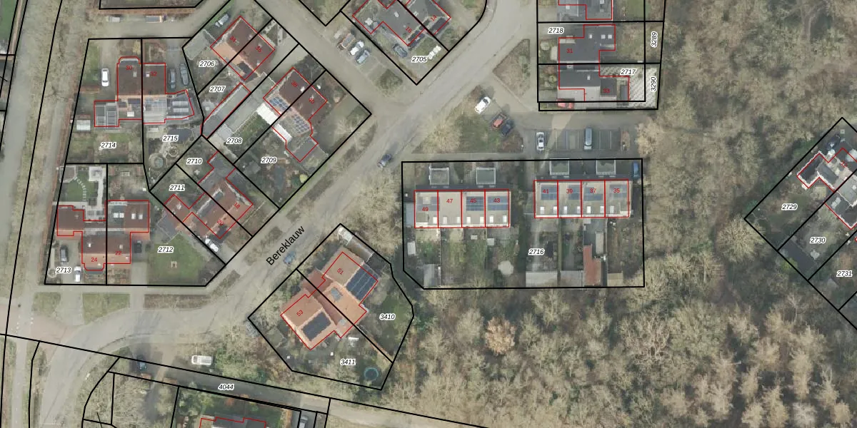 Het perceel waarop Bereklauw 49 staat heeft een oppervlakte van 1661 m². Dit is een zeer groot perceel. De perceeloppervlakte wordt geregistreerd door het Kadaster. Gedetailleerde informatie over de maten van dit perceel kunt u vinden in het rapport Kadastrale kaart met maatvoering van Bereklauw 49.
