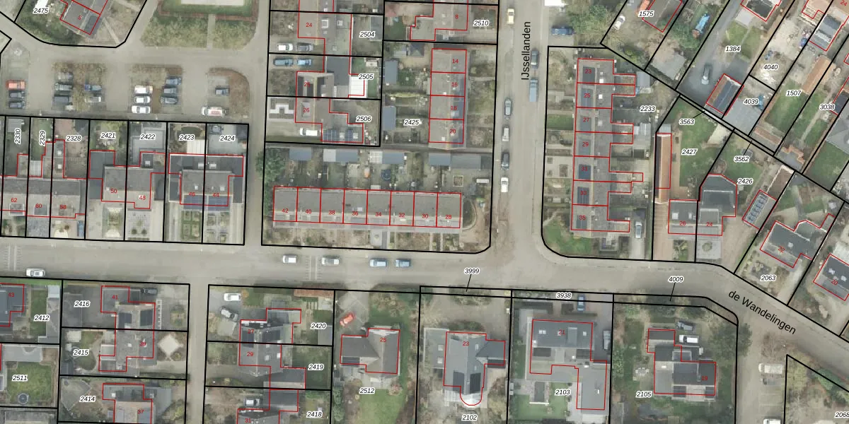 Het perceel waarop de Wandelingen 30 staat heeft een oppervlakte van 1993 m². Dit is een zeer groot perceel. De perceeloppervlakte wordt geregistreerd door het Kadaster. Gedetailleerde informatie over de maten van dit perceel kunt u vinden in het rapport Kadastrale kaart met maatvoering van de Wandelingen 30.
