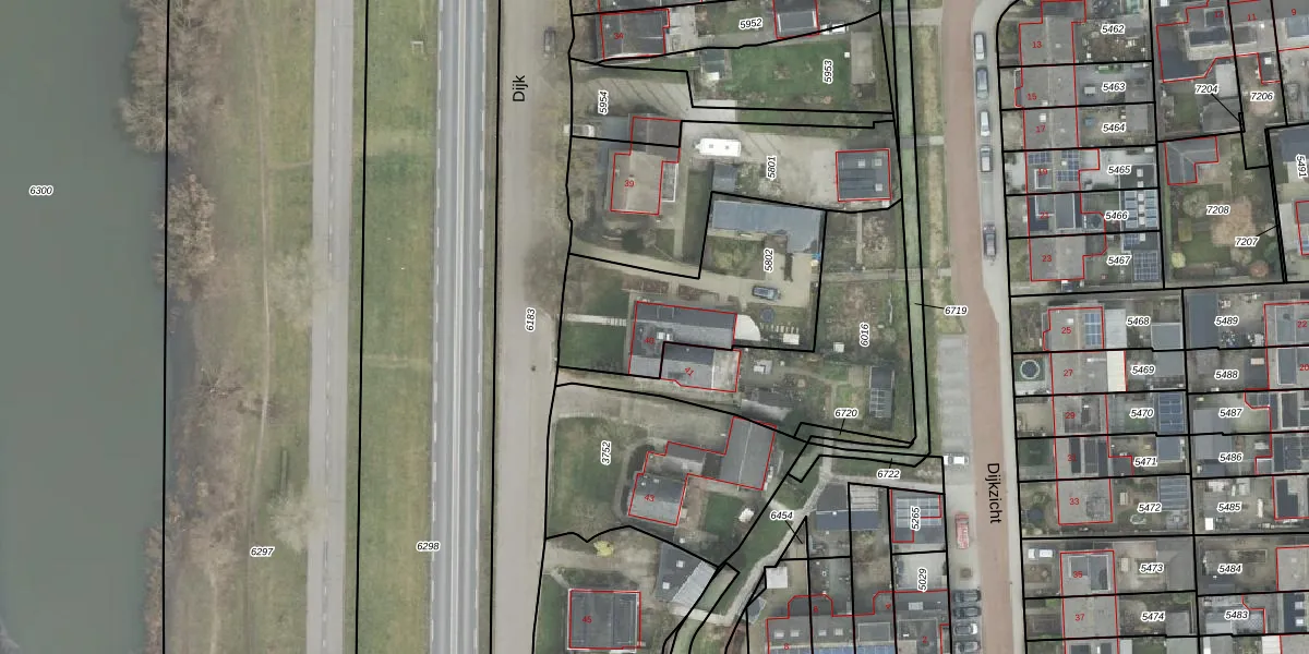 Het perceel waarop Dijk 40 staat heeft een oppervlakte van 738 m². Dit is een groot perceel. De perceeloppervlakte wordt geregistreerd door het Kadaster. Gedetailleerde informatie over de maten van dit perceel kunt u vinden in het rapport Kadastrale kaart met maatvoering van Dijk 40.