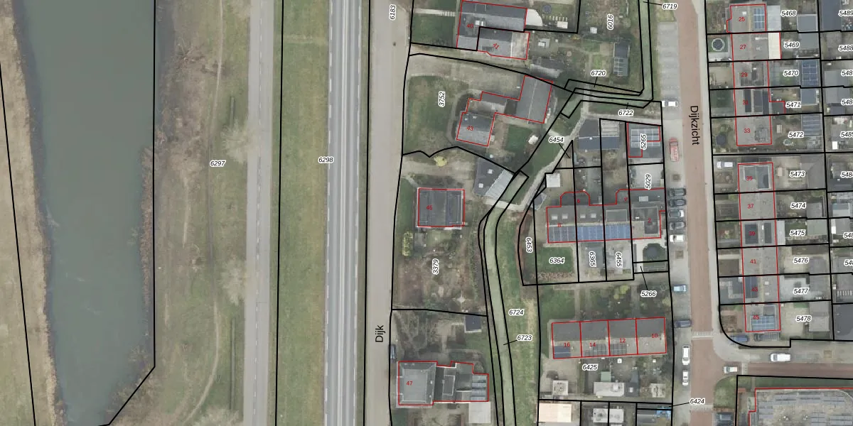 Het perceel waarop Dijk 45 staat heeft een oppervlakte van 827 m². Dit is een groot perceel. De perceeloppervlakte wordt geregistreerd door het Kadaster. Gedetailleerde informatie over de maten van dit perceel kunt u vinden in het rapport Kadastrale kaart met maatvoering van Dijk 45.