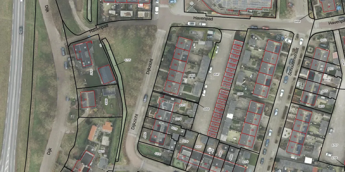 Het perceel waarop Dijkzicht 55 staat heeft een oppervlakte van 1174 m². Dit is een zeer groot perceel. De perceeloppervlakte wordt geregistreerd door het Kadaster. Gedetailleerde informatie over de maten van dit perceel kunt u vinden in het rapport Kadastrale kaart met maatvoering van Dijkzicht 55.