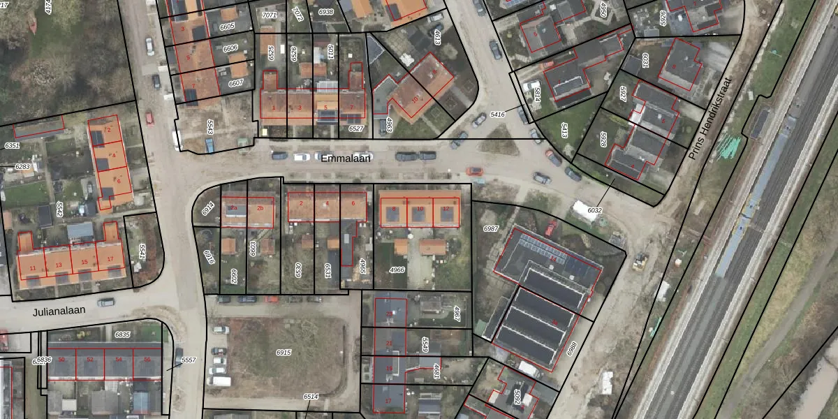 Het perceel waarop Emmalaan 10 staat heeft een oppervlakte van 598 m². Dit is een groot perceel. De perceeloppervlakte wordt geregistreerd door het Kadaster. Gedetailleerde informatie over de maten van dit perceel kunt u vinden in het rapport Kadastrale kaart met maatvoering van Emmalaan 10.