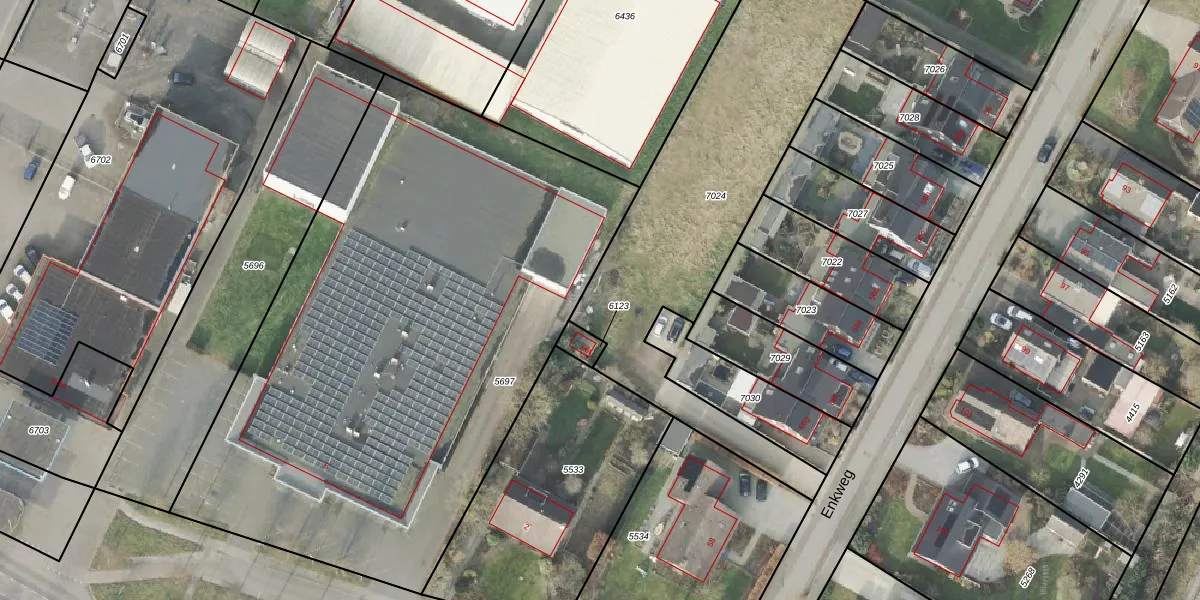 Het perceel waarop Enkweg 56-g-1 staat heeft een oppervlakte van 1481 m². Dit is een zeer groot perceel. De perceeloppervlakte wordt geregistreerd door het Kadaster. Gedetailleerde informatie over de maten van dit perceel kunt u vinden in het rapport Kadastrale kaart met maatvoering van Enkweg 56-g-1.