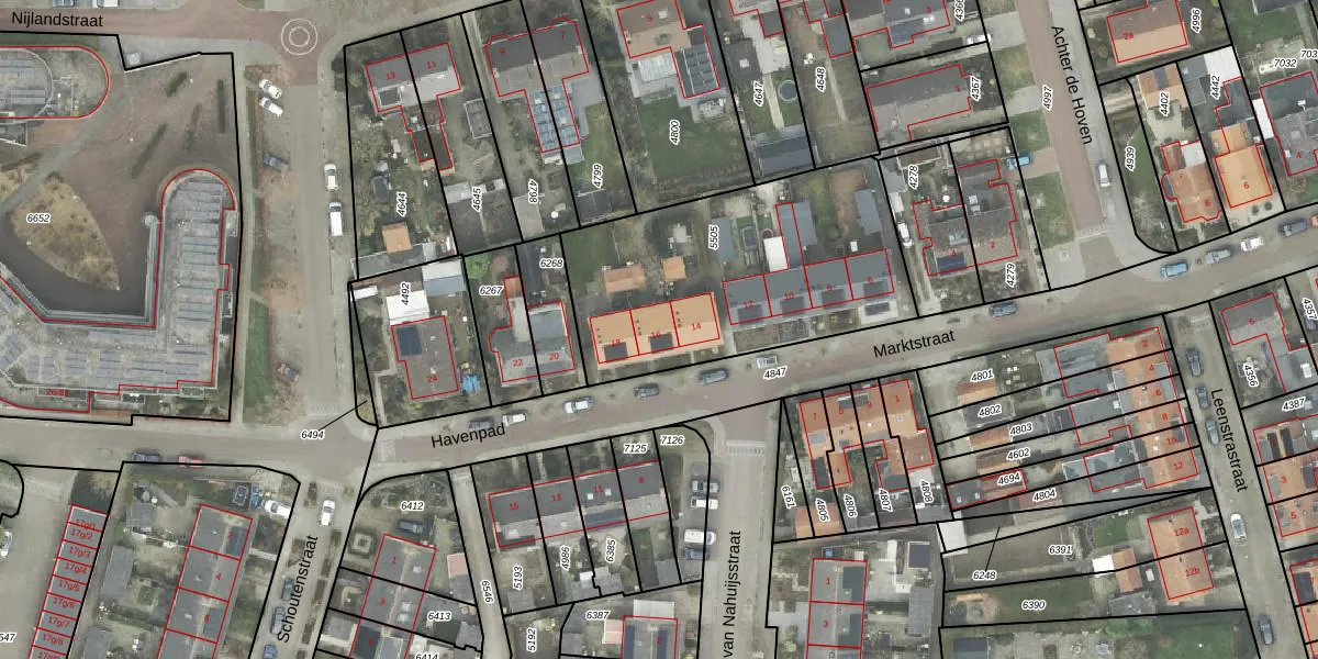 Het perceel waarop Havenpad 16 staat heeft een oppervlakte van 1252 m². Dit is een zeer groot perceel. De perceeloppervlakte wordt geregistreerd door het Kadaster. Gedetailleerde informatie over de maten van dit perceel kunt u vinden in het rapport Kadastrale kaart met maatvoering van Havenpad 16.