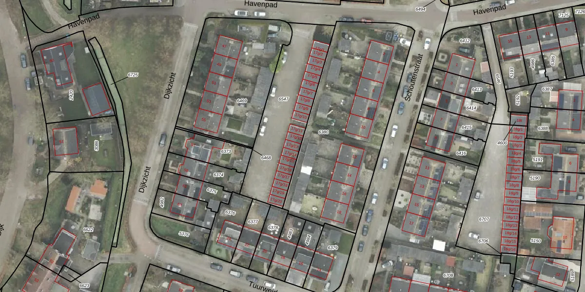 Havenpad 17-g-13 is gelegen op kadastraal perceel WHE00F6547. Deze kadastrale aanduiding is uniek en wordt gebruikt door het Kadaster om eigendomsrechten en andere zakelijke rechten vast te leggen. Het perceel maakt onderdeel uit van de kadastrale gemeente Wijhe.
