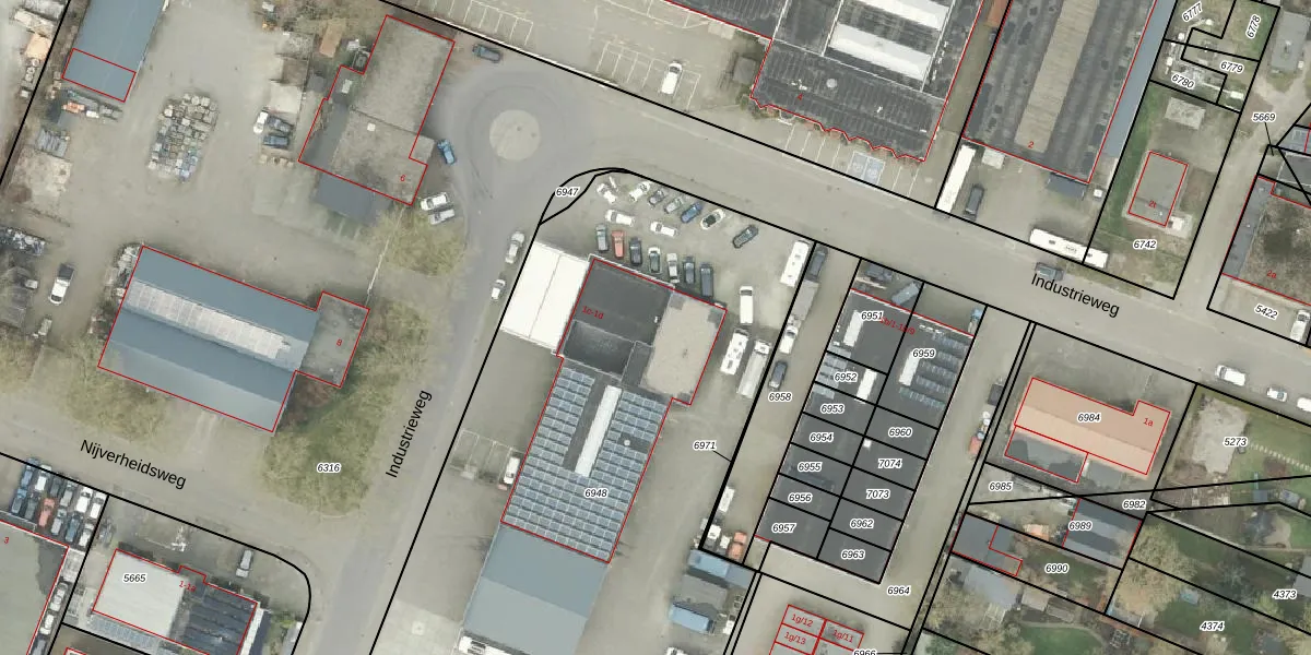 Het perceel waarop Industrieweg 1-d staat heeft een oppervlakte van 3972 m². Dit is een zeer groot perceel. De perceeloppervlakte wordt geregistreerd door het Kadaster. Gedetailleerde informatie over de maten van dit perceel kunt u vinden in het rapport Kadastrale kaart met maatvoering van Industrieweg 1-d.