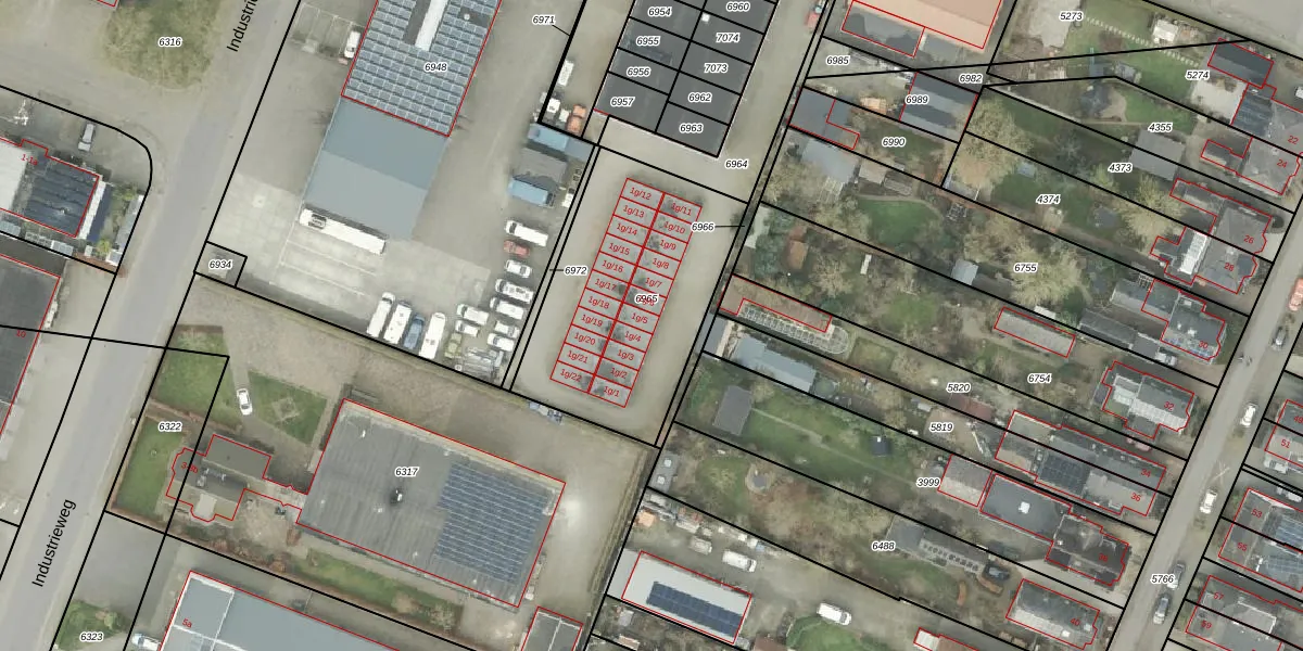 Het perceel waarop Industrieweg 1-g-7 staat heeft een oppervlakte van 965 m². Dit is een groot perceel. De perceeloppervlakte wordt geregistreerd door het Kadaster. Gedetailleerde informatie over de maten van dit perceel kunt u vinden in het rapport Kadastrale kaart met maatvoering van Industrieweg 1-g-7.