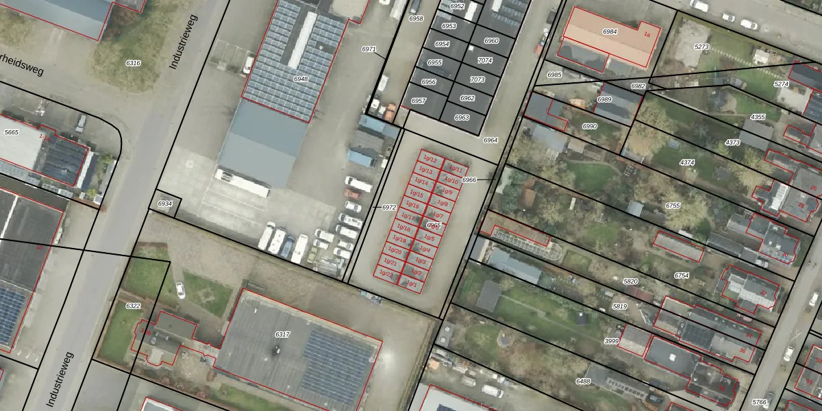 Het perceel waarop Industrieweg 1-g-18 staat heeft een oppervlakte van 965 m². Dit is een groot perceel. De perceeloppervlakte wordt geregistreerd door het Kadaster. Gedetailleerde informatie over de maten van dit perceel kunt u vinden in het rapport Kadastrale kaart met maatvoering van Industrieweg 1-g-18.
