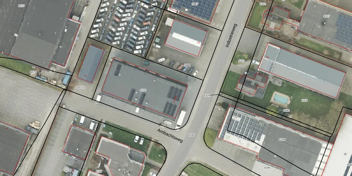 Het perceel waarop Industrieweg 14 staat heeft een oppervlakte van 1763 m². Dit is een zeer groot perceel. De perceeloppervlakte wordt geregistreerd door het Kadaster. Gedetailleerde informatie over de maten van dit perceel kunt u vinden in het rapport Kadastrale kaart met maatvoering van Industrieweg 14.