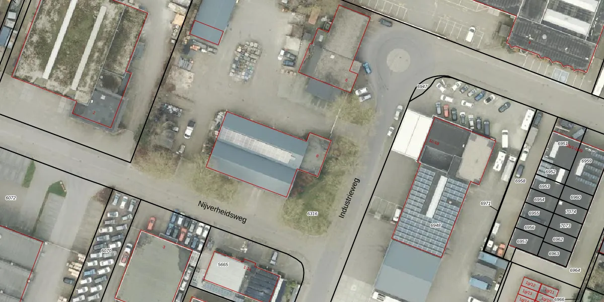 Industrieweg 8 is gelegen op kadastraal perceel WHE00F6316. Deze kadastrale aanduiding is uniek en wordt gebruikt door het Kadaster om eigendomsrechten en andere zakelijke rechten vast te leggen. Het perceel maakt onderdeel uit van de kadastrale gemeente Wijhe.
