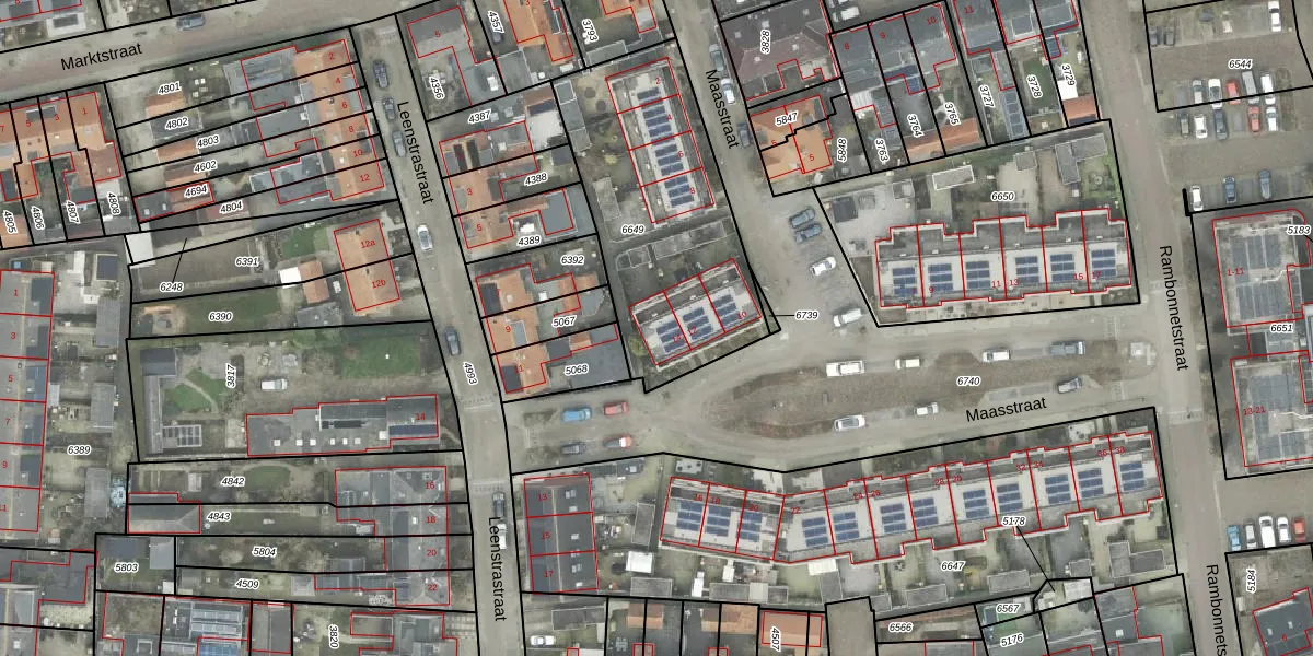 Het perceel waarop Maasstraat 14 staat heeft een oppervlakte van 1015 m². Dit is een zeer groot perceel. De perceeloppervlakte wordt geregistreerd door het Kadaster. Gedetailleerde informatie over de maten van dit perceel kunt u vinden in het rapport Kadastrale kaart met maatvoering van Maasstraat 14.
