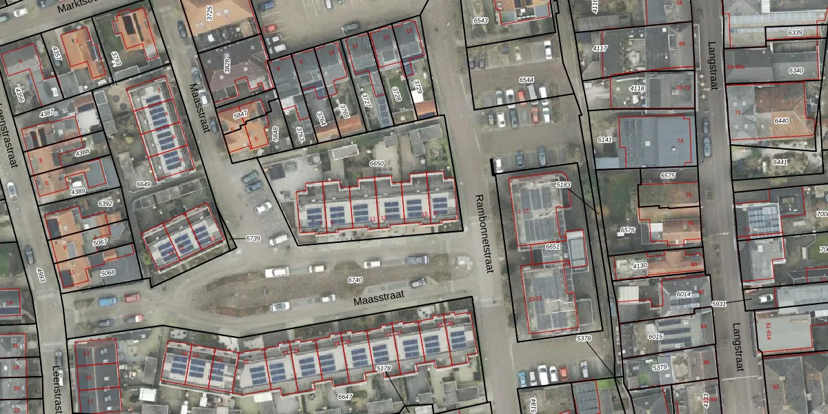Het perceel waarop Maasstraat 15 staat heeft een oppervlakte van 1105 m². Dit is een zeer groot perceel. De perceeloppervlakte wordt geregistreerd door het Kadaster. Gedetailleerde informatie over de maten van dit perceel kunt u vinden in het rapport Kadastrale kaart met maatvoering van Maasstraat 15.