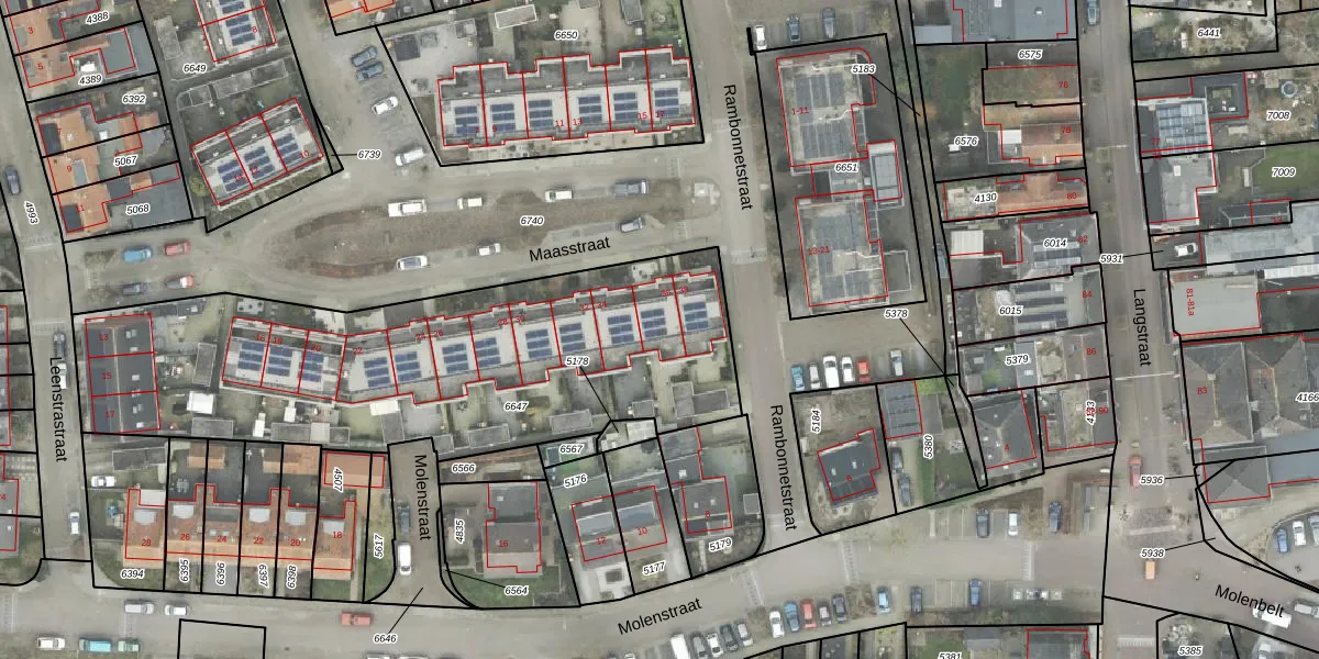 Het perceel waarop Maasstraat 36 staat heeft een oppervlakte van 2265 m². Dit is een zeer groot perceel. De perceeloppervlakte wordt geregistreerd door het Kadaster. Gedetailleerde informatie over de maten van dit perceel kunt u vinden in het rapport Kadastrale kaart met maatvoering van Maasstraat 36.