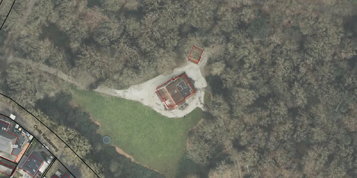 Het perceel waarop Oude Raalterweg 1 staat heeft een oppervlakte van 15,4 ha. Dit is een zeer groot perceel. De perceeloppervlakte wordt geregistreerd door het Kadaster. Gedetailleerde informatie over de maten van dit perceel kunt u vinden in het rapport Kadastrale kaart met maatvoering van Oude Raalterweg 1.
