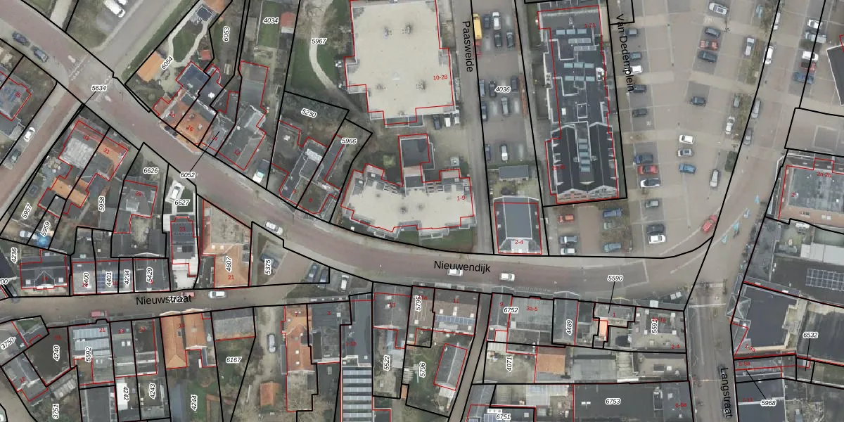 Het perceel waarop Paasweide 6 staat heeft een oppervlakte van 2410 m². Dit is een zeer groot perceel. De perceeloppervlakte wordt geregistreerd door het Kadaster. Gedetailleerde informatie over de maten van dit perceel kunt u vinden in het rapport Kadastrale kaart met maatvoering van Paasweide 6.