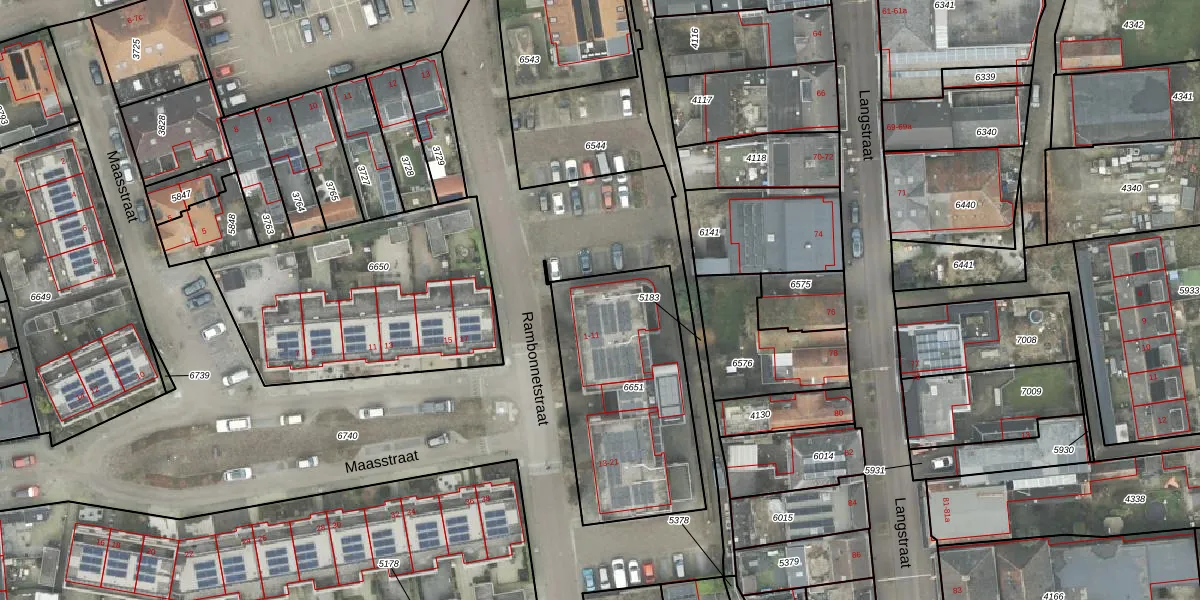 Het perceel waarop Rambonnetstraat 1 staat heeft een oppervlakte van 840 m². Dit is een groot perceel. De perceeloppervlakte wordt geregistreerd door het Kadaster. Gedetailleerde informatie over de maten van dit perceel kunt u vinden in het rapport Kadastrale kaart met maatvoering van Rambonnetstraat 1.
