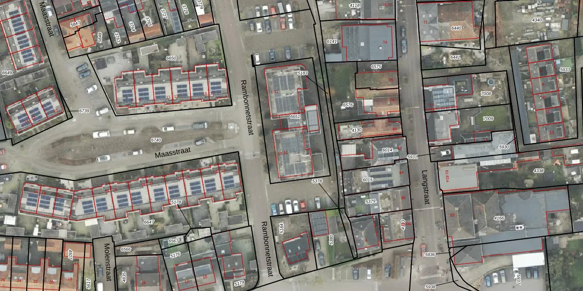 Het perceel waarop Rambonnetstraat 17 staat heeft een oppervlakte van 840 m². Dit is een groot perceel. De perceeloppervlakte wordt geregistreerd door het Kadaster. Gedetailleerde informatie over de maten van dit perceel kunt u vinden in het rapport Kadastrale kaart met maatvoering van Rambonnetstraat 17.
